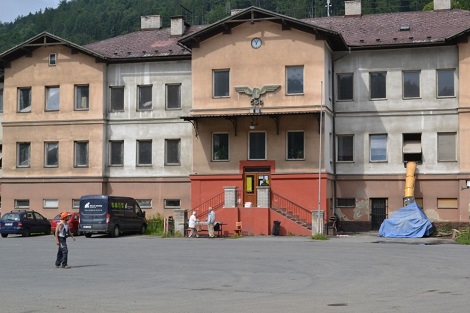 Z dálky připomíná vlakové nádraží v Hanušovicích vybydlenou ruinu.