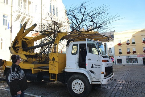 Samotné vyjmutí každého stromu z půdy trvalo speciálnímu stroji čtyřicet minut. Listnáče rostly u radnice od roku 1997. Teď je nahradí javory babyka.