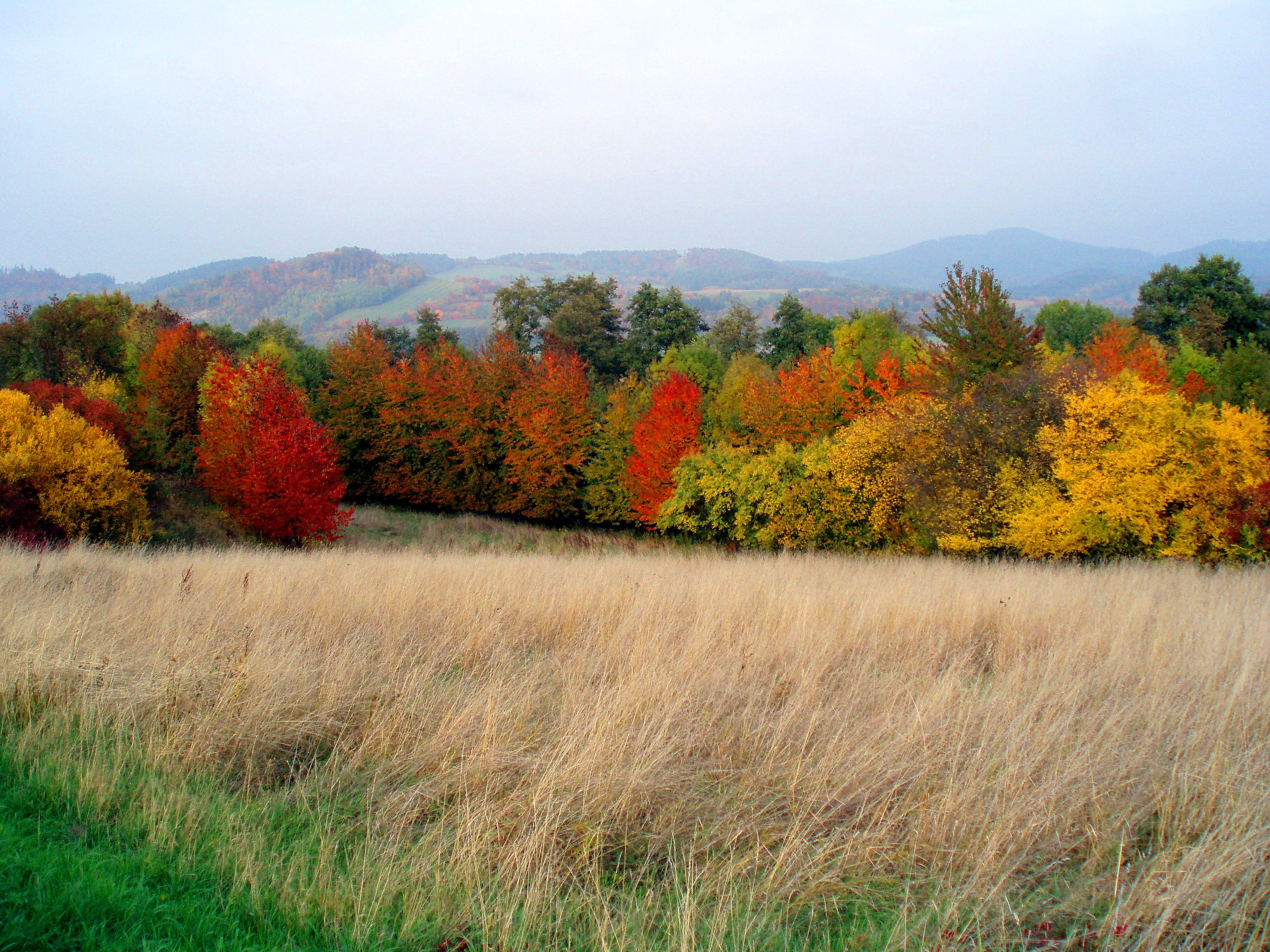 Komentář: V oparu zleva Zbovánad Bohutínem,uprostřed Zlatý kopec nad Radmilovem a vpravo Háj.