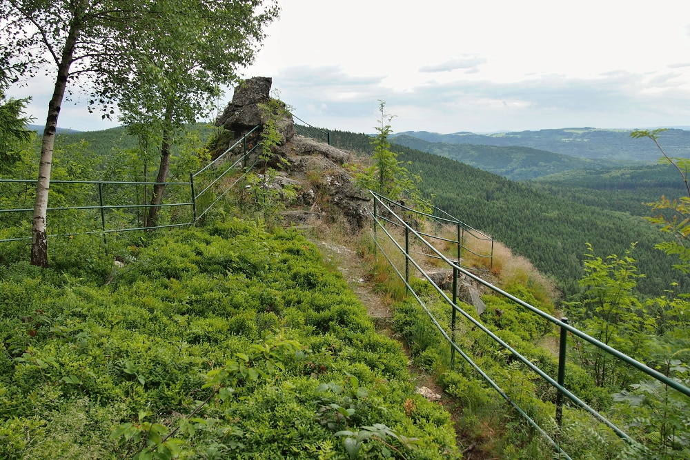 Tomáši, promiňte, že se sem montuju, ale toto místo je mou srdeční záležitostí a strávil jsem tam pár nádherných chvil včetně vítání Nového roku. Přístup je nejsnazší z modré turistické značky Kamenný vrch - Dobrá nálada u Mladoňova (mezi Smrčníkem a Volyní odbočit po svahu doleva dolů do listnatého lesa a hledat) nebo na kole od Dobré nálady nahoru kolem hájenky směrem na Říjiště. Cesta však vede pouze pod skálu a nahoru to lze jenom s kolem na zádech - to samé zpět. Na místo samé ovšem žádný ukazatel neupozorňuje...což je nakonec taky dobře.