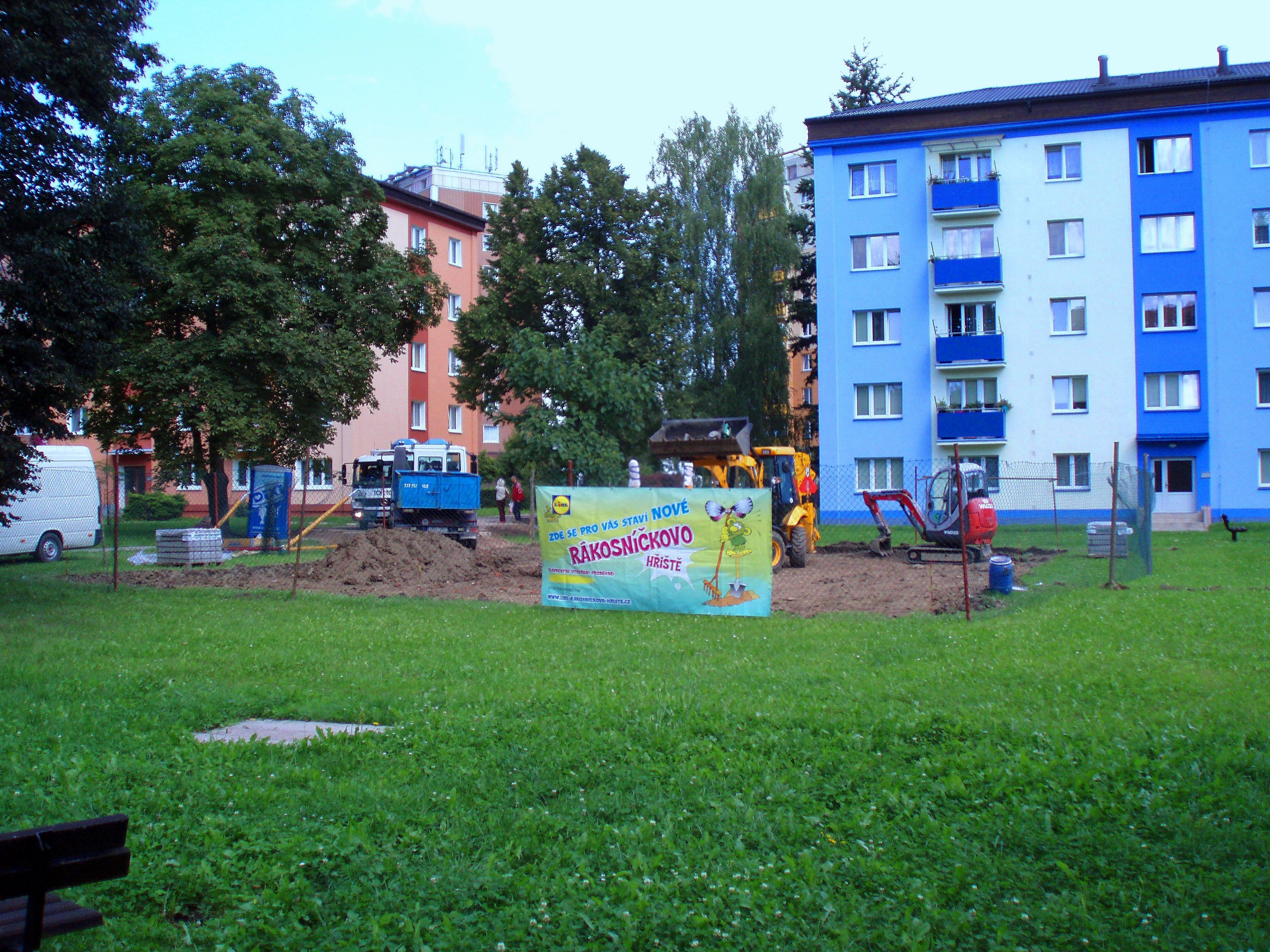 Komentář: Probíhá výstavba nového hřiště pro děti.