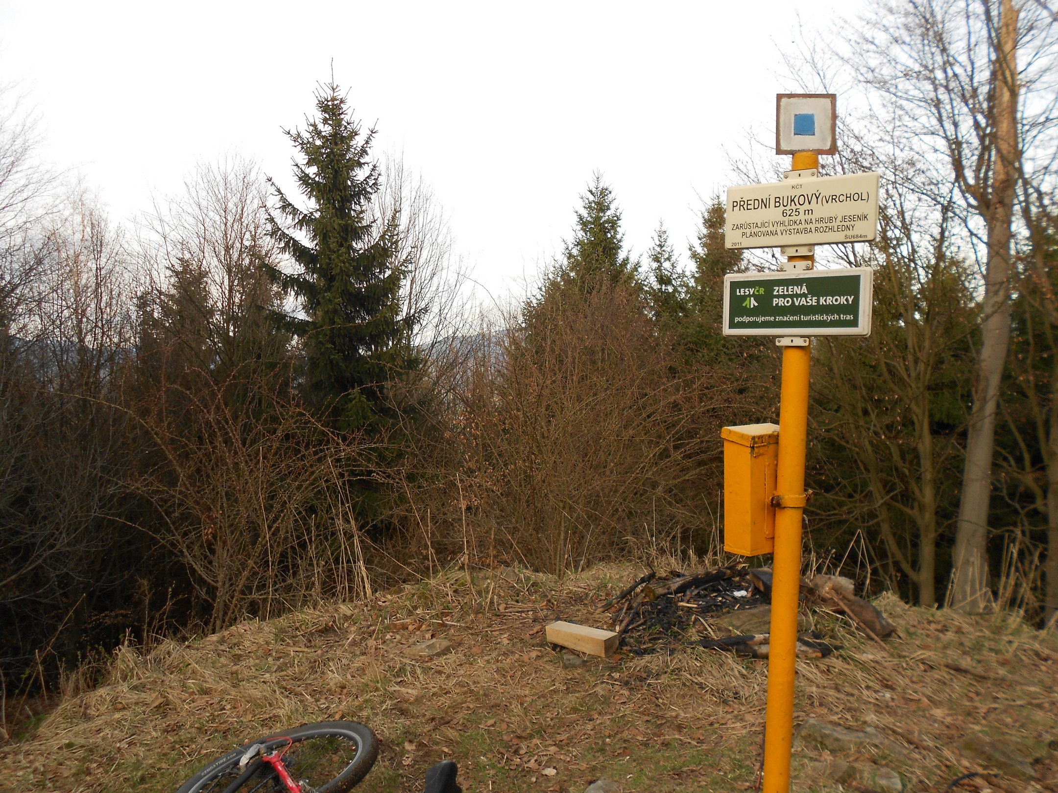 Ta vrcholová cedulka slibuje rozhlednu už minimálně 4-5 let a pořád ani náznak toho, že by se k něčemu schylovalo. On by to snad nebyl takový problém, kdyby ovšem místo v turistických mapách nebylo stále vyznačeno jako vyhlídkové. Člověk se potom zkrátka neubrání zklamaání. Což o to, my z okolí si o tom tady napíšeme a poučíme se z toho, ale například hosté losinských lázní a penzionů, kteří sem dojedou z dálky a vyrazí na procházku v očekávání vyhlídek - ty to pak bude hodně mrzet.