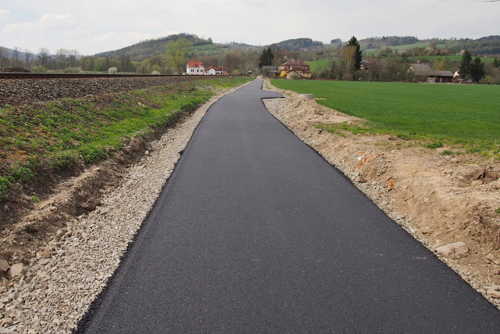Komentář: Úsek dokončované cyklostezky podél trati od Habermannovy vily do Bludova-lázní sice ještě není oficiálně otevřený, ale už se tudy jezdí. Frčí se po něm parádně a až budou hotová odpočívadla a dorostou vysázené stromy, bude to i pěkné na pokoukání. Především však bezpečnější než po stávající rušné silnici.