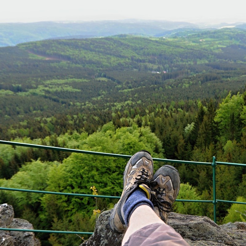 Omlouvá neomlouvá - takhle ten koment zní dost namyšleně a vzhledem k účelu fotky i zbytečně. Kvůli šeru jsem clonil tuším na f4 nebo f4,5, tak se projevila menší hloubka ostrosti. Mám to dokonce i se zaostřením na pozadí, tedy s ostrými lesy a rozmázlým popředím, ale tohle mi prostě přišlo lepší. Deset lidí = deset názorů a já vybral podle toho svého. Je to jen momentka z výletu, žádné umělecké dílo ani reklama na boty.