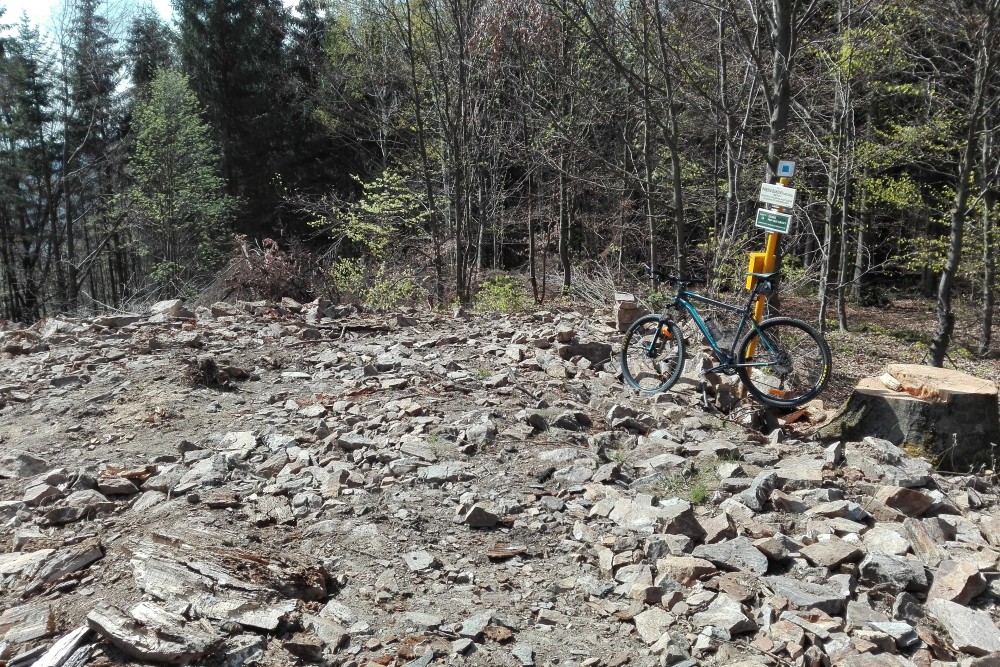 Komentář: Ačkoliv je tento vrchol v mapách a dokonce i na blízkém rozcstníku označován za vyhlídku, skrze hustý porost není vidět nic. Minimálně pět let tu visí cedulka s informací, že se uvažuje o stavbě rozhledny, ale dlouho se nedělo nic. Dnes jsem tam však našel několik pokácených stromů a vrchol vysypán sutí. Vše nasvědčuje tomu, že jde o první fázi stavby slibované vyhlídkové věže a mezbývá než doufat, že vše dobře dopadne a brzy se pokocháme skutečnými výhledy.