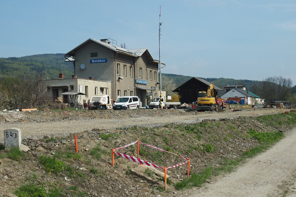 Komentář: Opravy trati u nádraží v Bohdíkově. Koleje jsou odstraněny minimálně v úseku Bohdíkov-Ruda nad M.