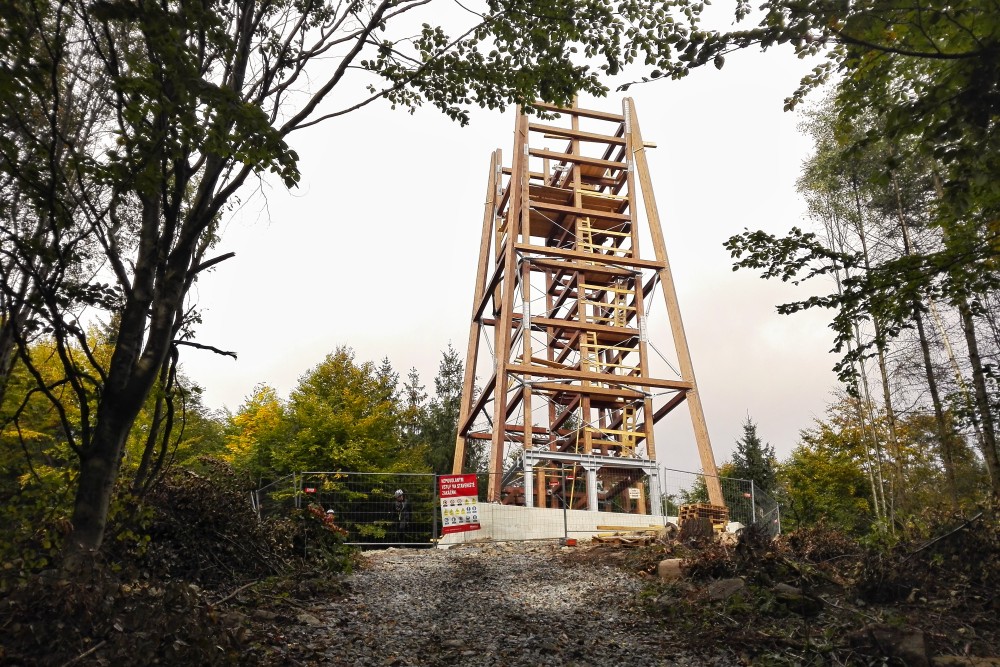 Komentář: Rozhledna roste, už je pěkně vidět i z dálky nad stromy. Snad se povede dodržet listopadový termín dokončení.