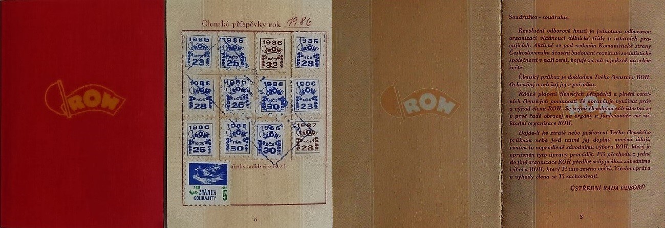 Komentář: Komunistická minulost - Členský průkaz - Revoluční odborové hnutí (ROH) - Členské známky solidarity