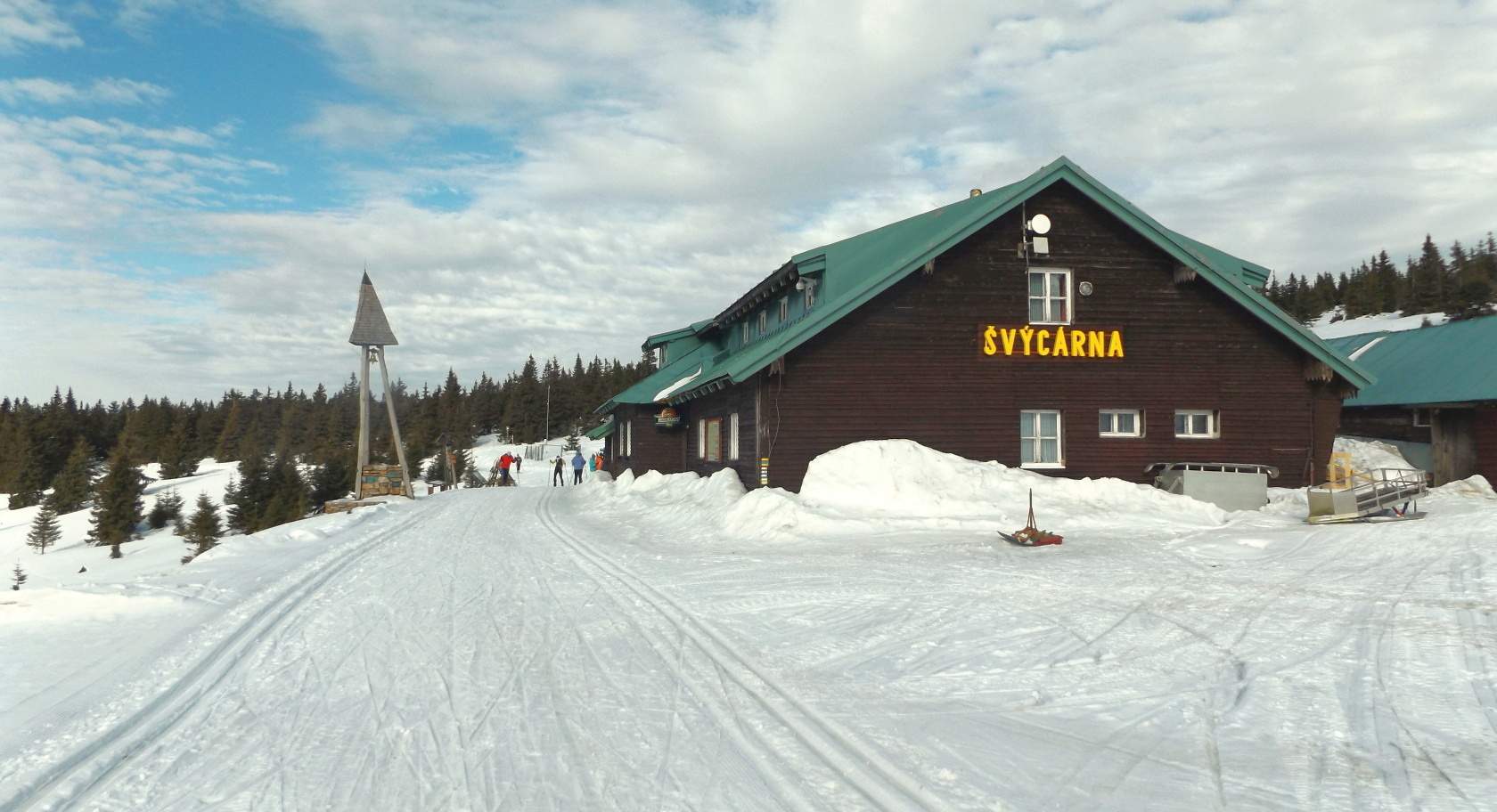 Komentář: Švýcárna je turistická chata v Jeseníkách. Leží na hřebenové trase mezi Červenohorským sedlem a Pradědem v nadmořské výšce 1304 m n. m. Chata byla původně salaší, kterou nechal postavit roku 1829 kníže Alois Josef II. z Lichtensteina (1796-1858). Salaš užíval švýcarský bača (odtud pojmenování chaty). Rozvojem turistiky koncem 19. století starou salaš nechává kníže Jan II. z Lichtensteina (1840-1929) nahradit 1887 novou srubovou chatou, určenou pro turisty.