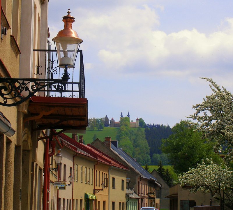 Pohled z centra Králík na klášter