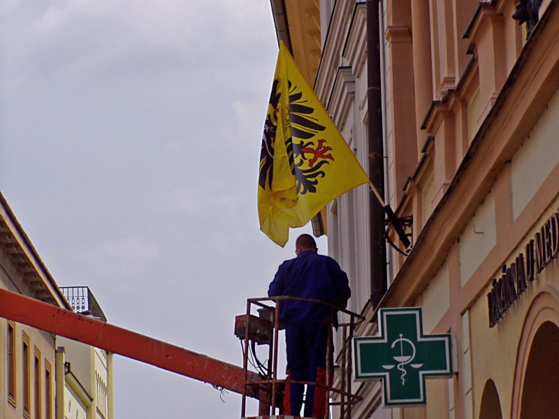 Tak už jsme zase v Rakousko-Uhersku ! Vyvěšování nových státních vlajek.