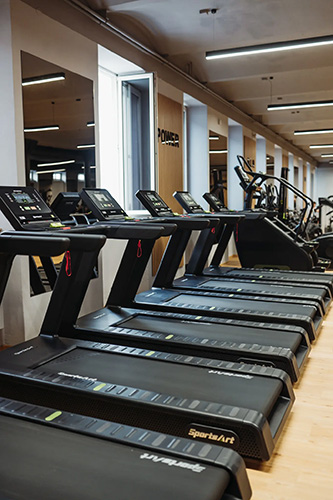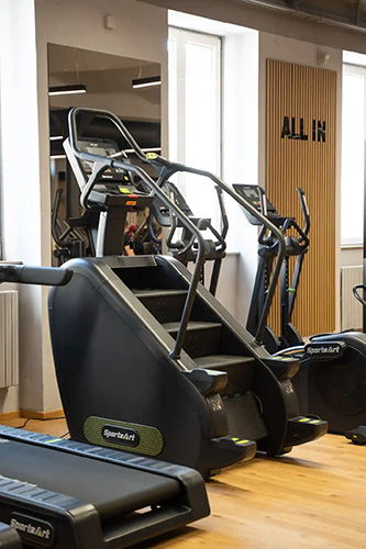 Kardio a posilovací zóna – moderní vybavení pro všechny úrovně pokročilosti.